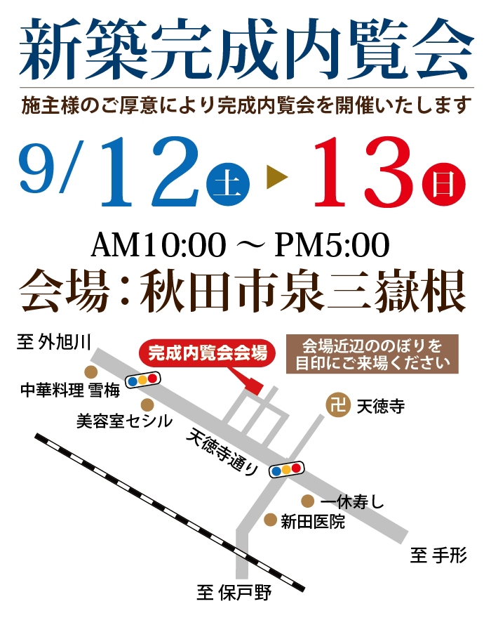 5/17(土)・18(日) 秋田市広面樋口にて新築完成内覧会開催!