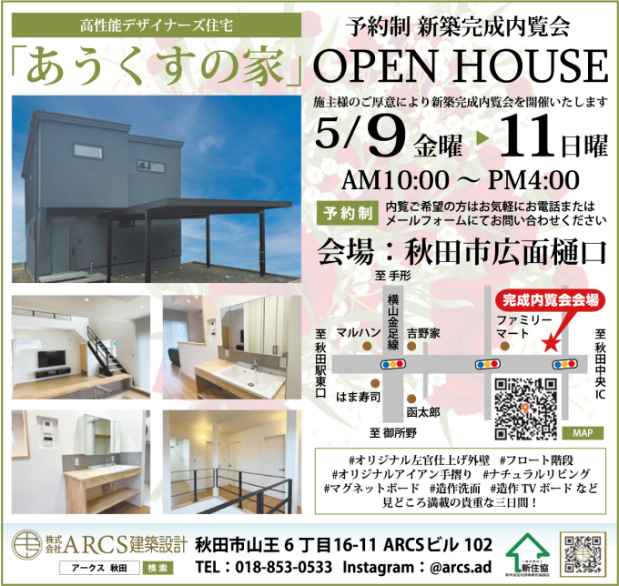 【予約制】6/28(土)~7月13日(日) 秋田市川尻新川町にて新築完成内覧会開催!