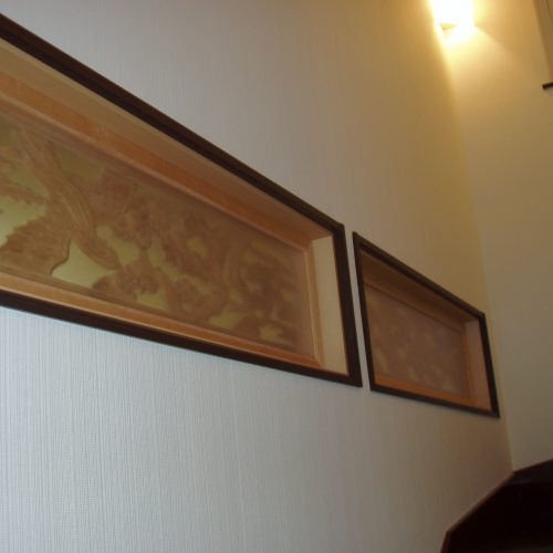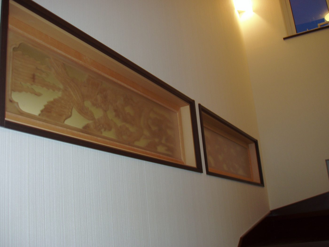 建替え前の欄間をリペアし、和室と階段室の間仕切りに設置。