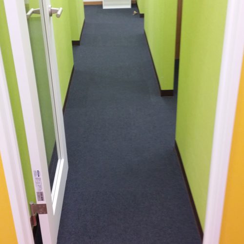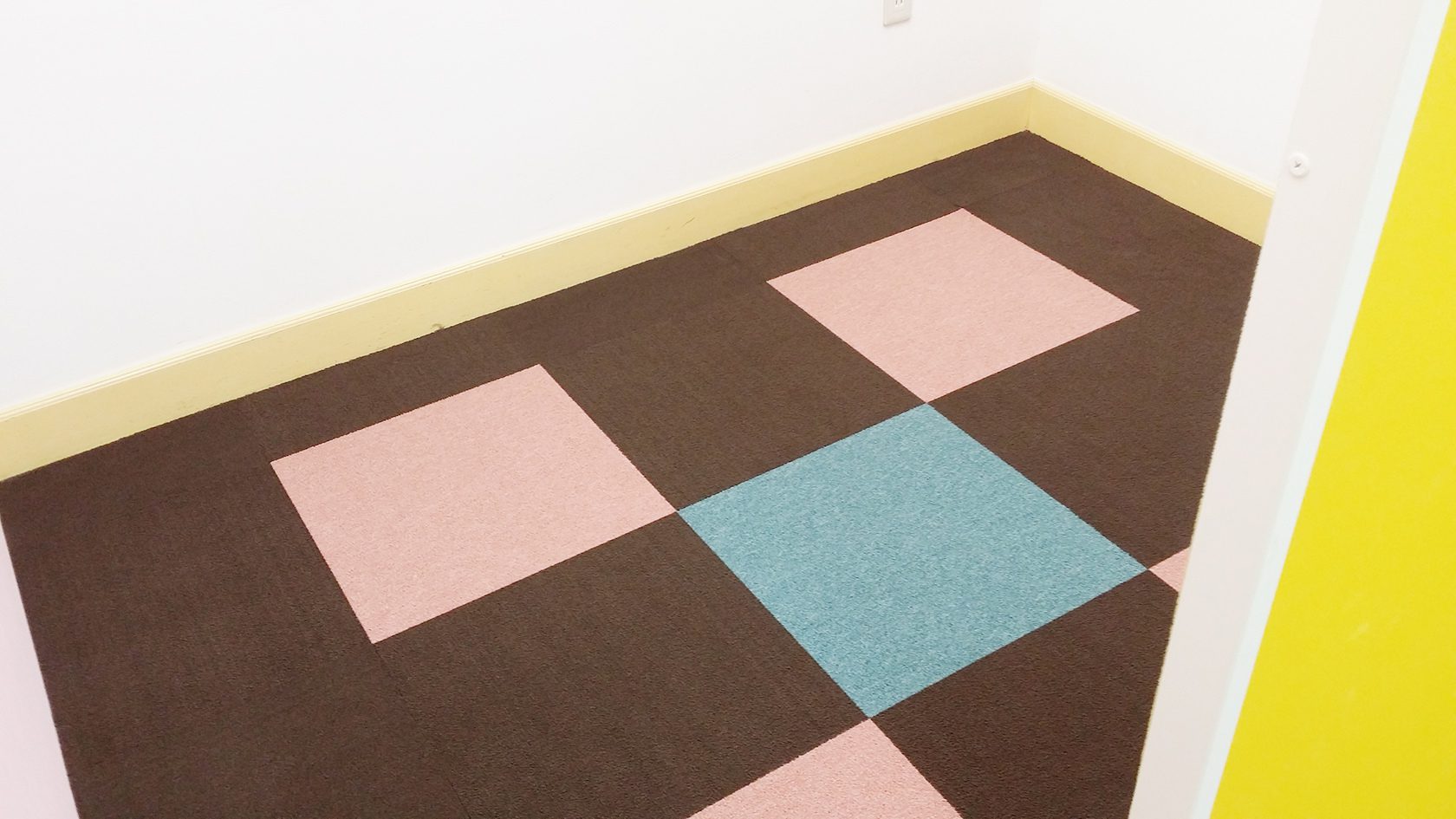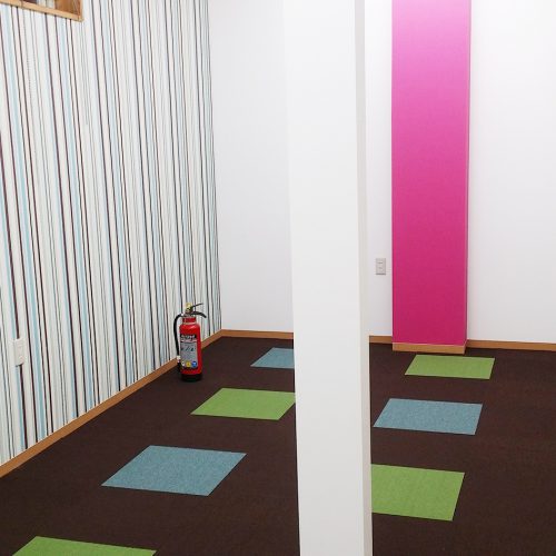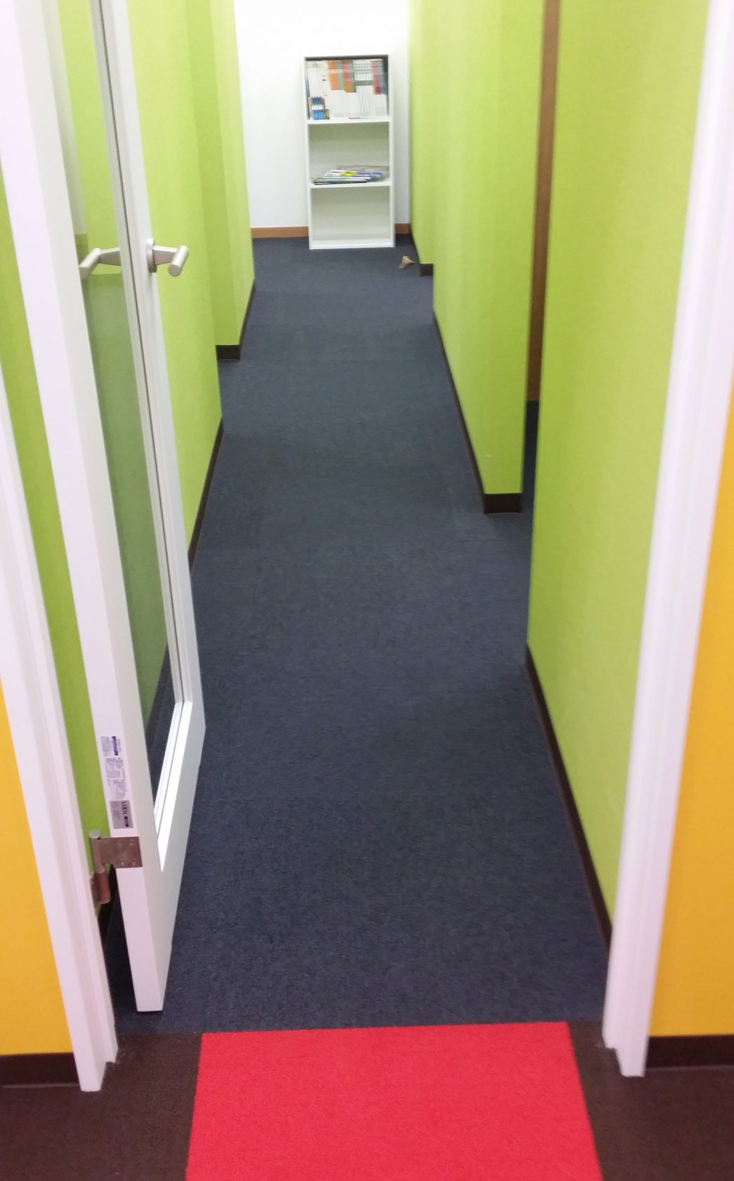 骨組組は、軽量鉄骨。空間の繋がりと冷暖房の効率を向上させる為、間仕切り壁は天井部分を開放。 建具はアンダーカットとする。電気配線は、動力以外全て新規で引き直し電圧を確認する。 最近の学習塾はとてもカラフルになったのですね。
