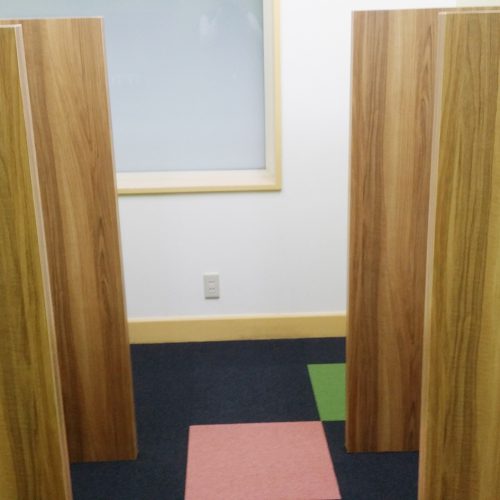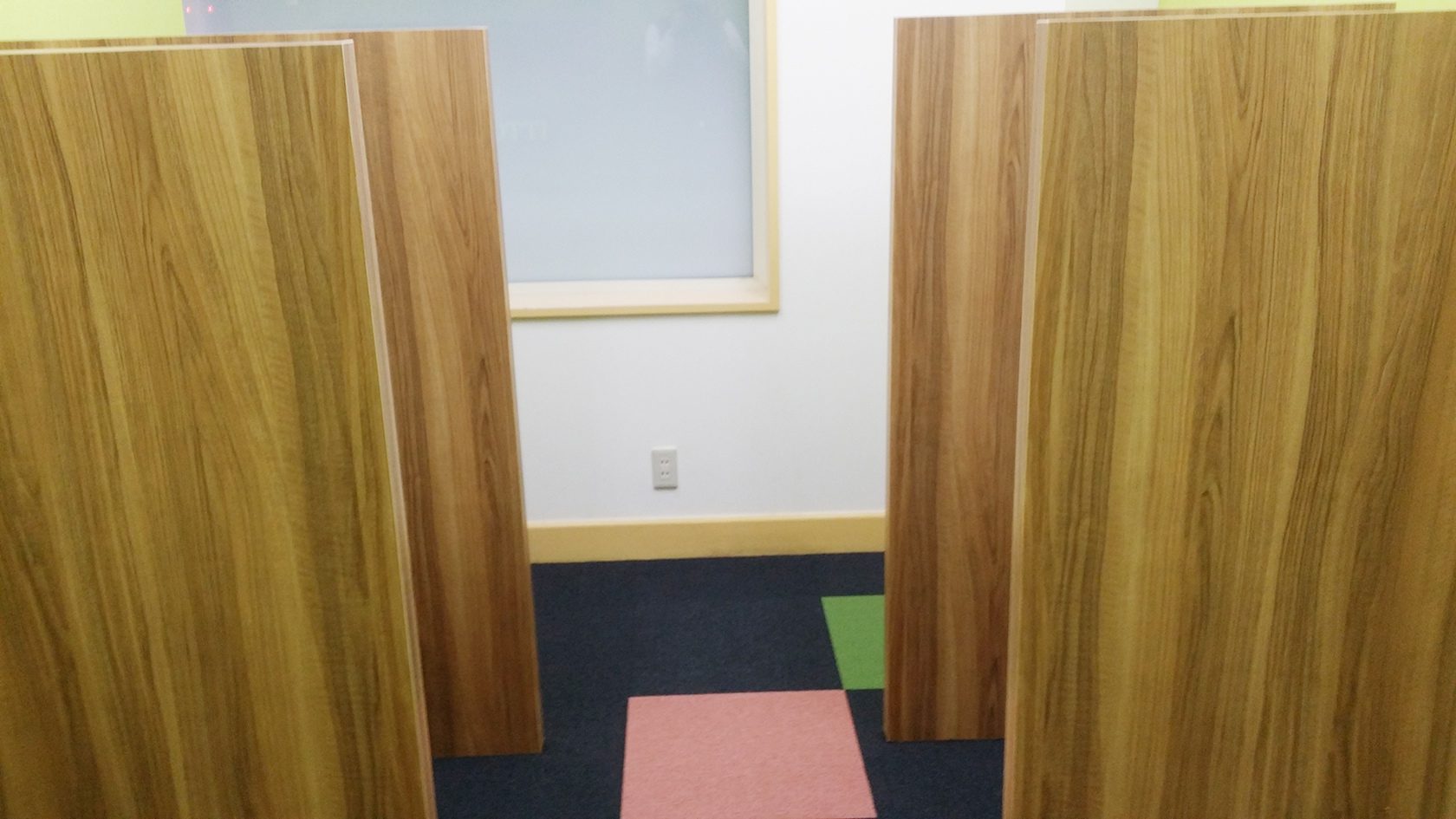 デスクを仕切る間仕切り壁は造作パーテーション。