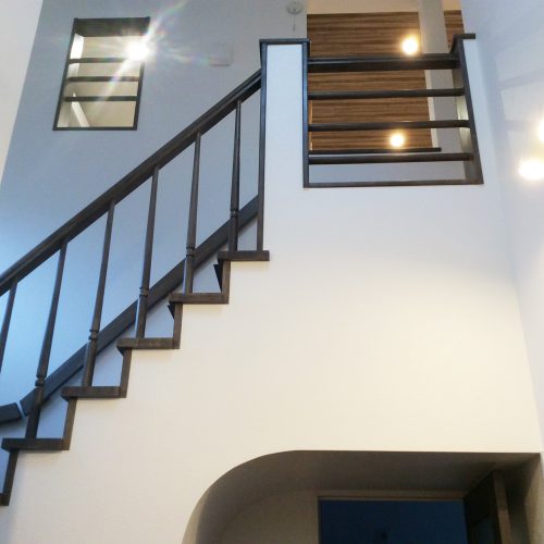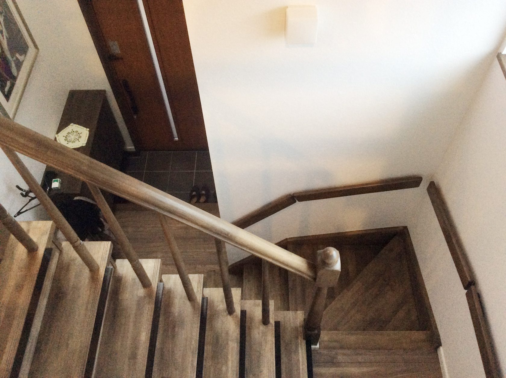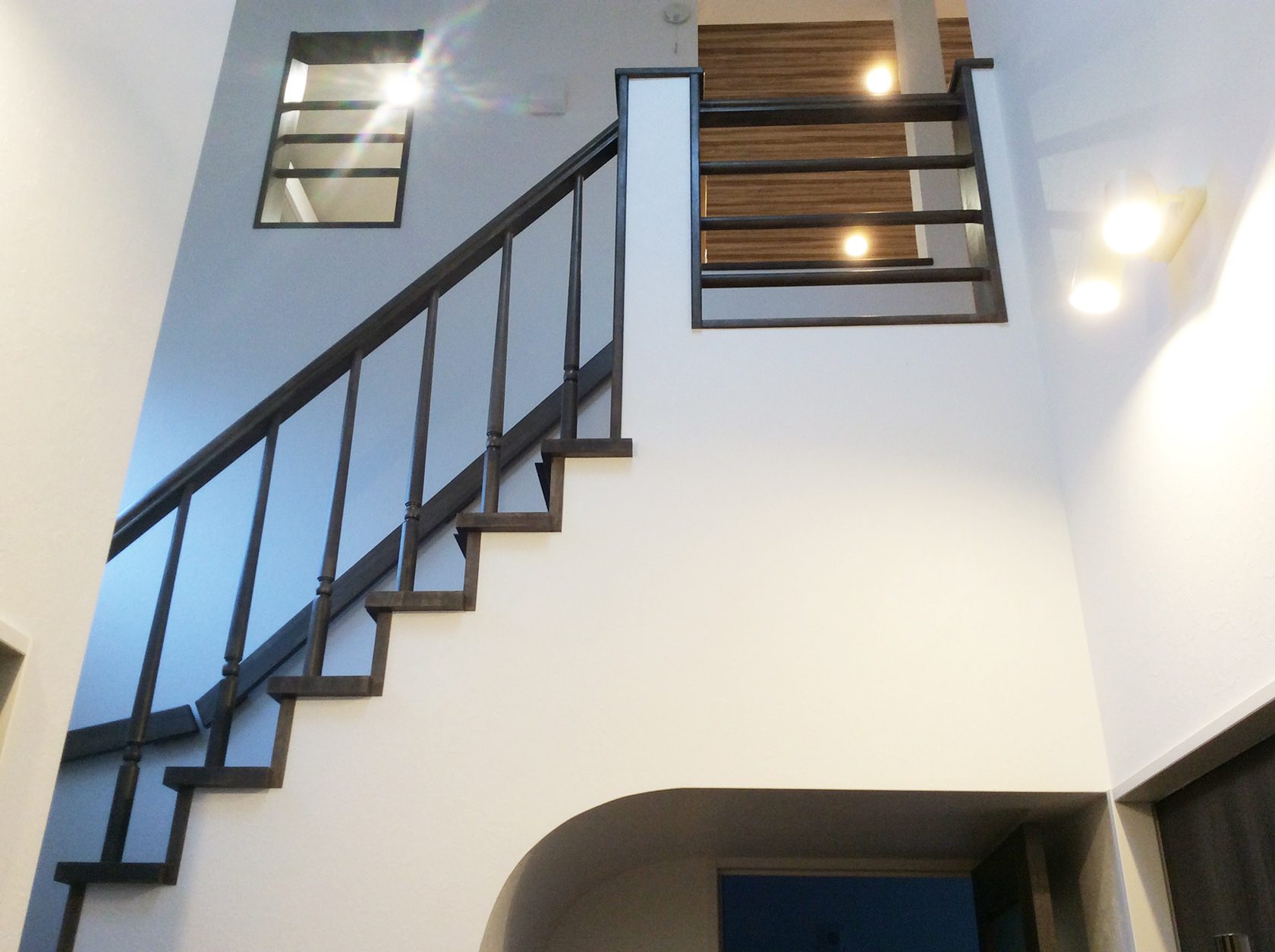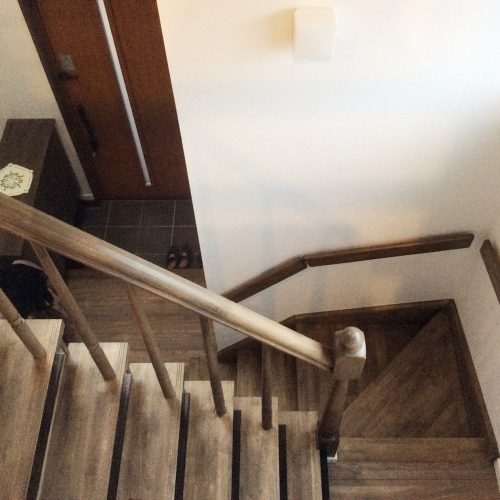 階段の手摺はポールタイプとし、目隠し部分を減らし解放感を優先。