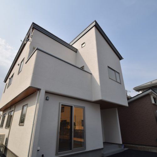 左官で仕上げた外壁は角が無く包み込むようにR仕上げ。施主様の性格を表すようなやわらかく優しい仕上がりに。