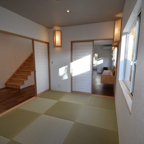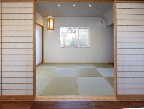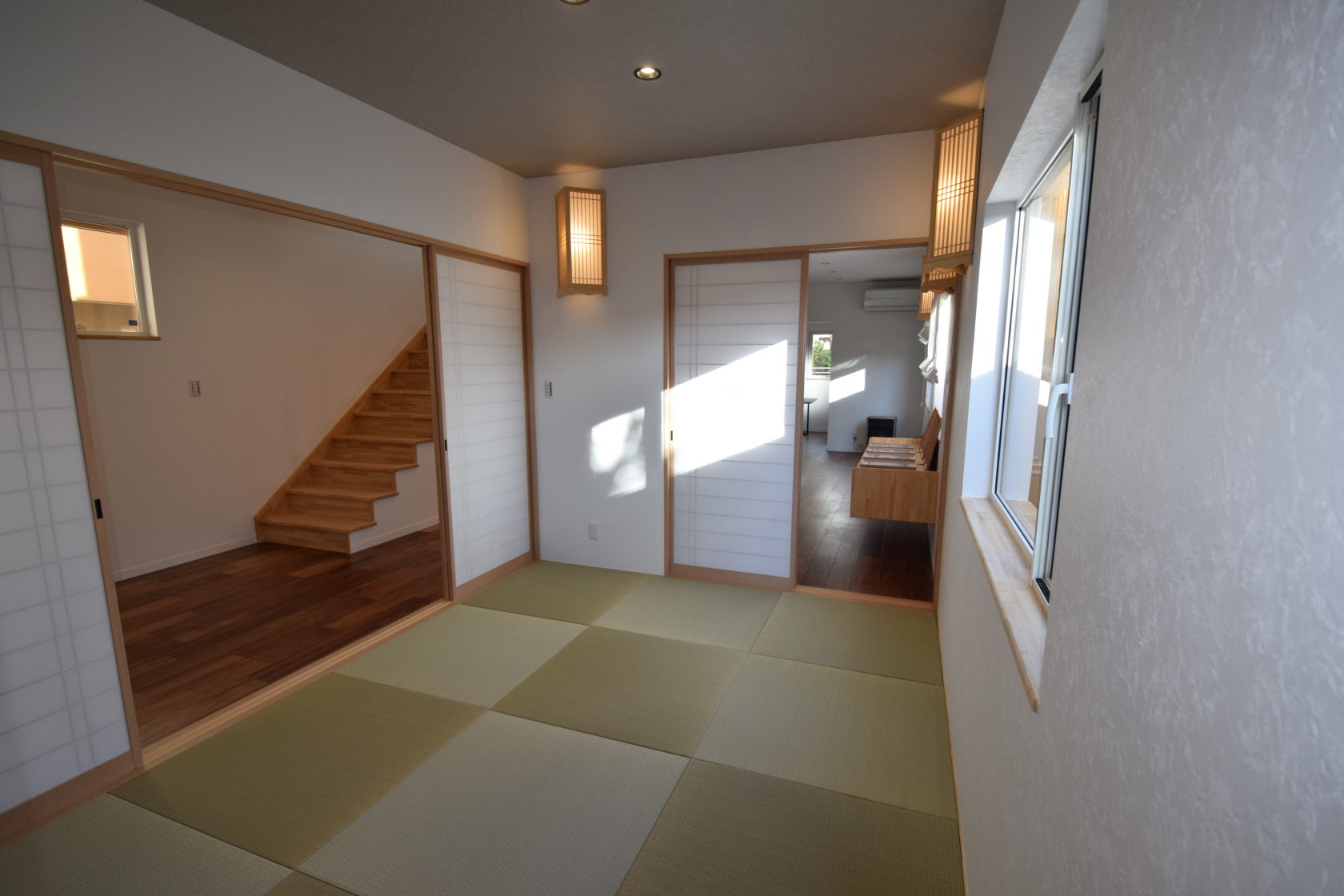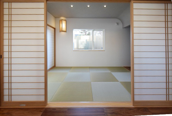 家族の思いでがある行灯やRの下がり天井、障子の升目や畳のイグサ。細かいこだわりを詰めてみました。リメイクされた思い出のある行灯の柔らかな明かりがご家族を優しく照らしてくれます。