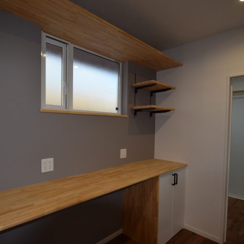 鍋料理が大好きなご家族の為に棚の強度を重視。