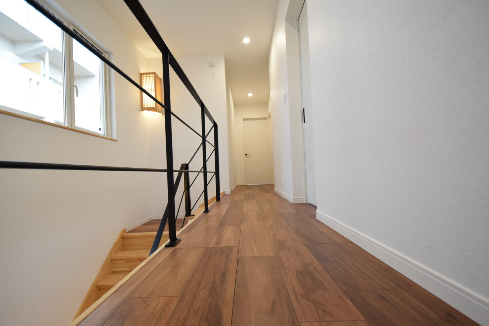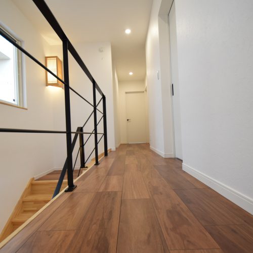 家族の意見を尊重しリビングとホールの中間へ階段を配置