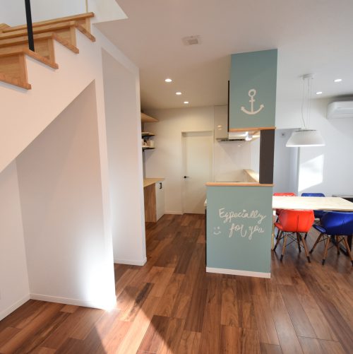 落書きできる壁を使ったキッチンはメッセージボードとしても使えるので、忙しい家族のコミニケーションを生み出してくれます。