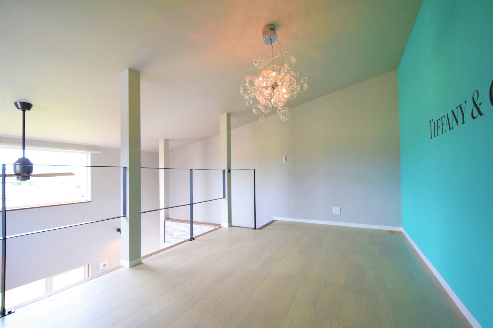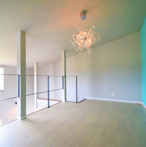 固定資産税が掛からないロフトは天井高さが1.4mの規制がある為、今回は使い勝手を優先し一般的な天井高さ。子供の帰省に対応できるよう7.5帖+クロークのオープンルームを配置。オリジナルの壁紙は施主様のお気に入りのブルーを配色。