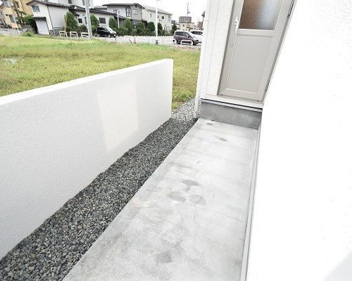 土地区画整理事業によって間口6.5mとなった土地。静かだった町並みは、賑やかになり、新しい街並みにあわせたプライバシー重視型の平屋住宅。全面道路は、これから人通りが多くなることを予想しファサードはシンプルに通行人の視線を外した位置に開口部を設置。