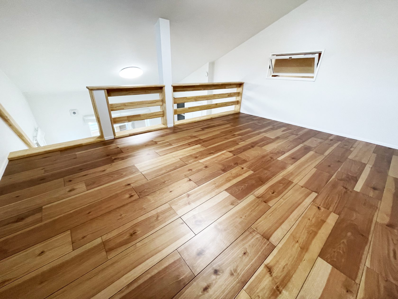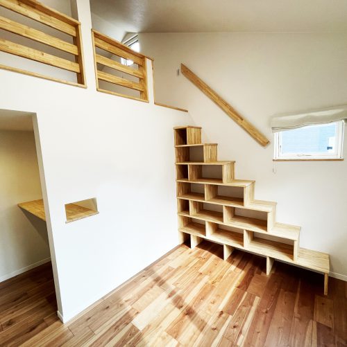 断熱+通気を強化している為、豪雨でも静かな洋室ロフト。停滞しがちな空気は欄間を通して循環させ、ご家族のライフスタイルが変化した後も、実用化できるオープンロフトを配置。