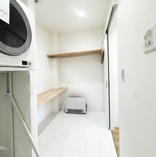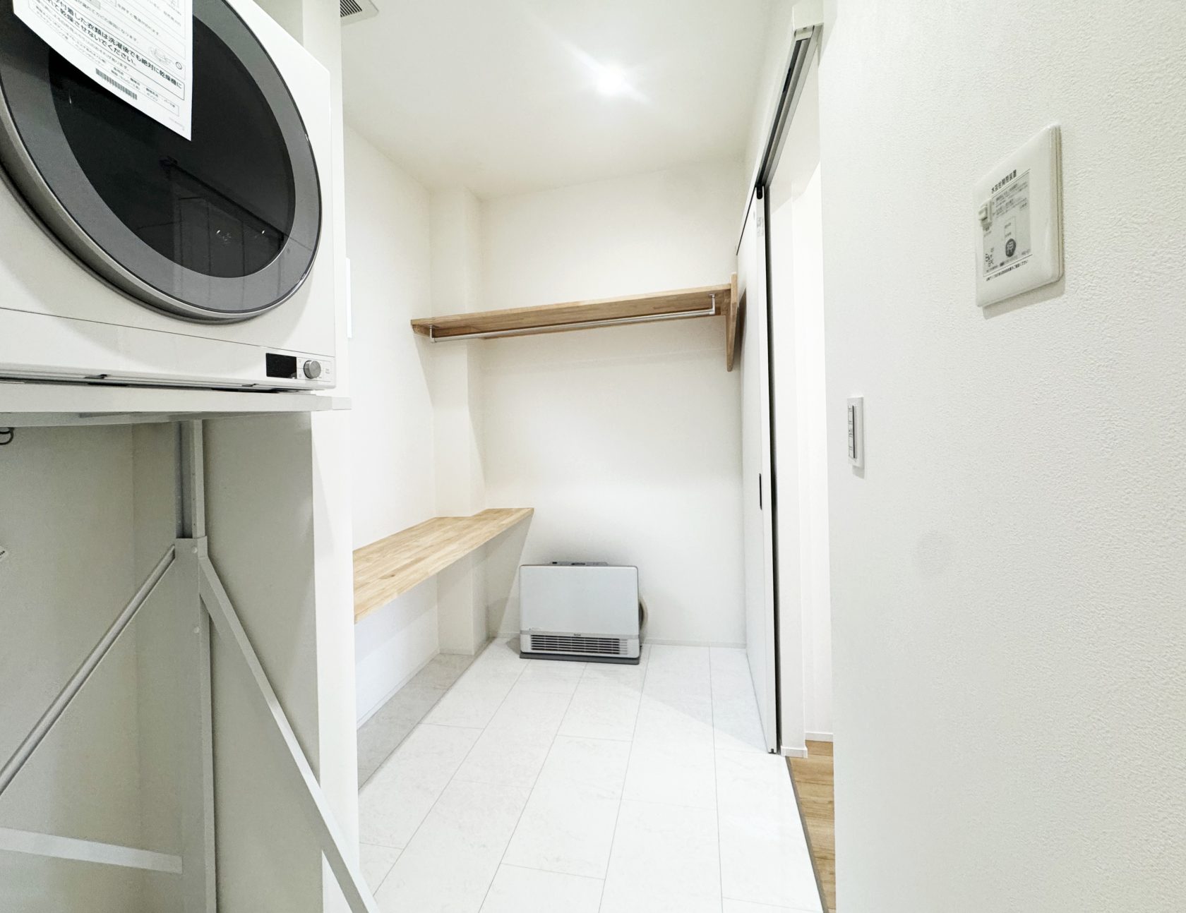 洗濯 → 乾燥 → 取り込み → 整理をこの空間で完結できる動線。自然な流れの家事体験。