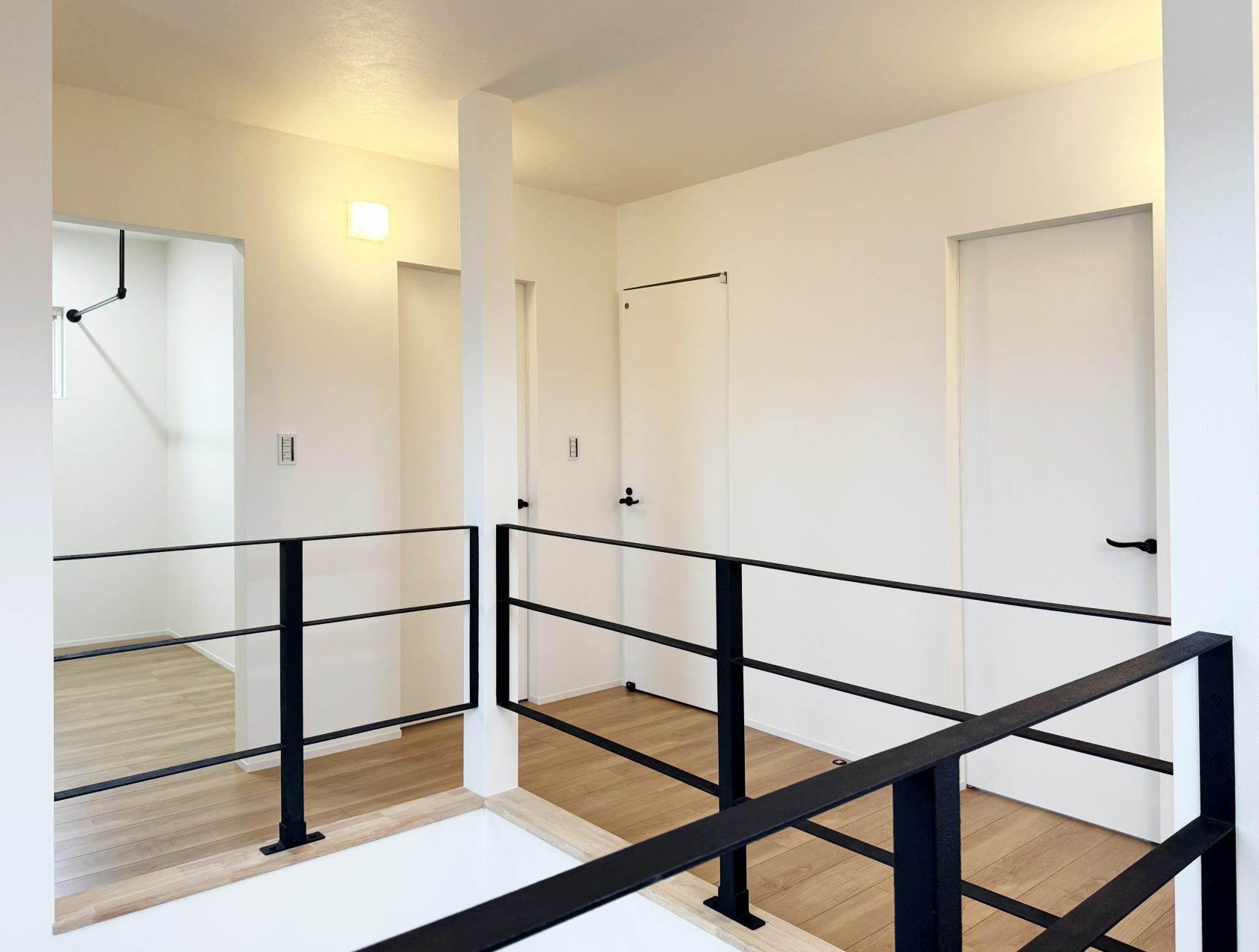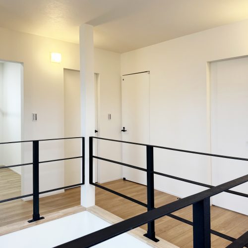 扉と廊下が近接し、回廊的な動線を強調。住戸内を“回る”廊下。