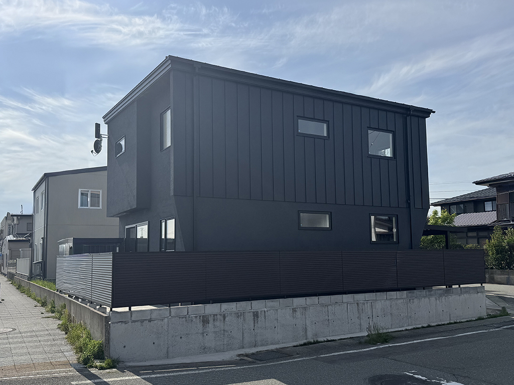 外壁の質感が重なり合い、力強い住まいの“佇まい”。