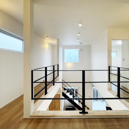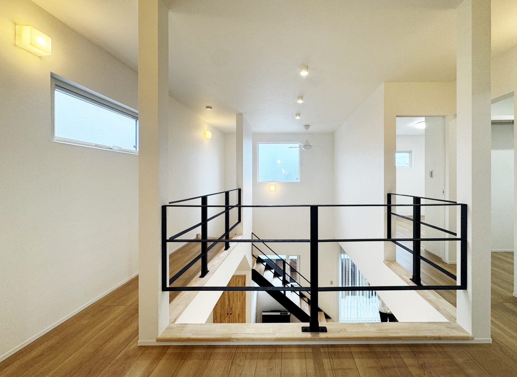 視線を動かすごとに変わる光と影。立ち止まりたくなるような廊下を演出。