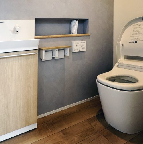 機能性に配慮し階段下を有効活用。素材の質感と空間の余裕で豊かさを演出。