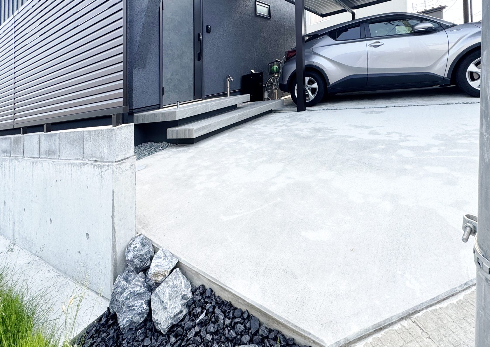 タイルと洗い出しのコントラストが、日常の「あたりまえ」を少しだけ特別に。