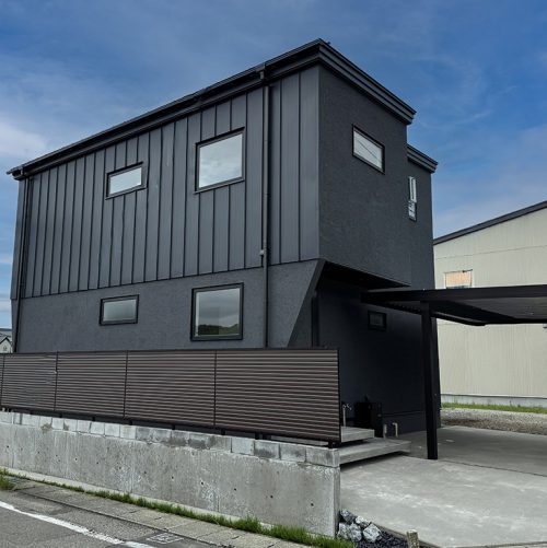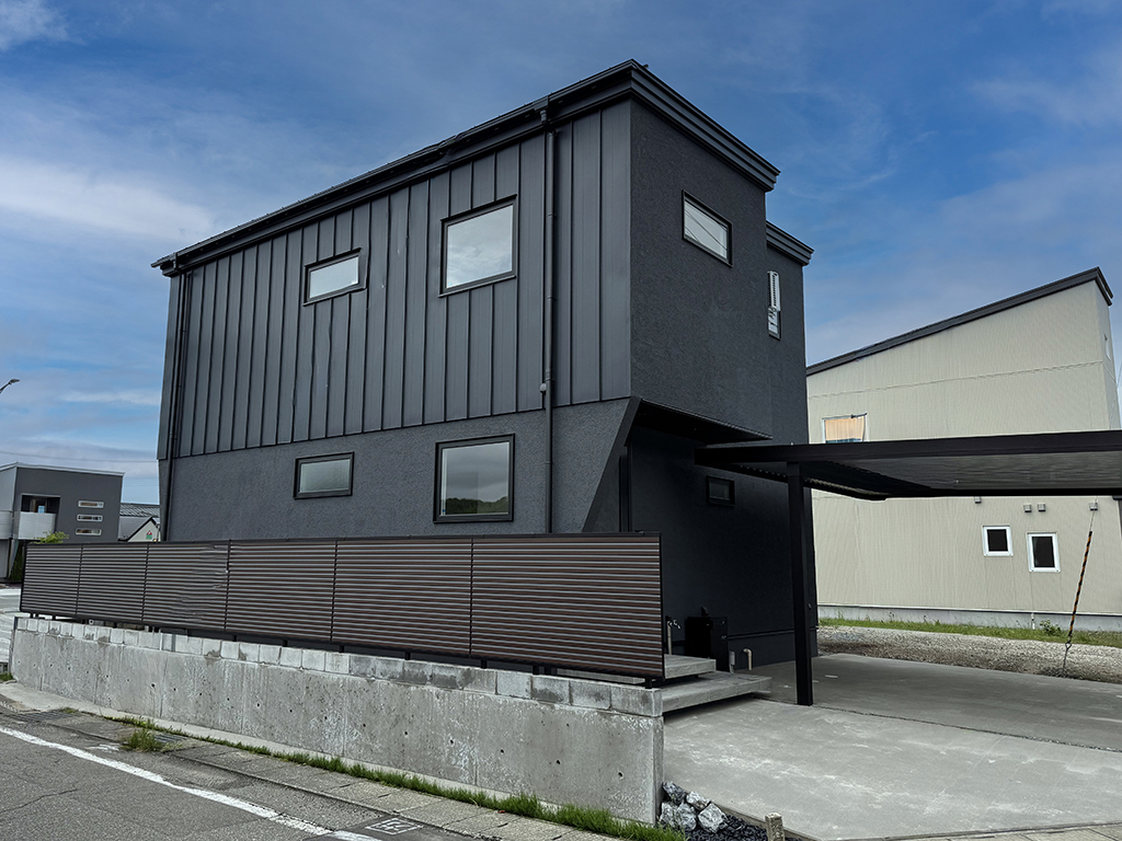 「左官×板金の無機質な外観」