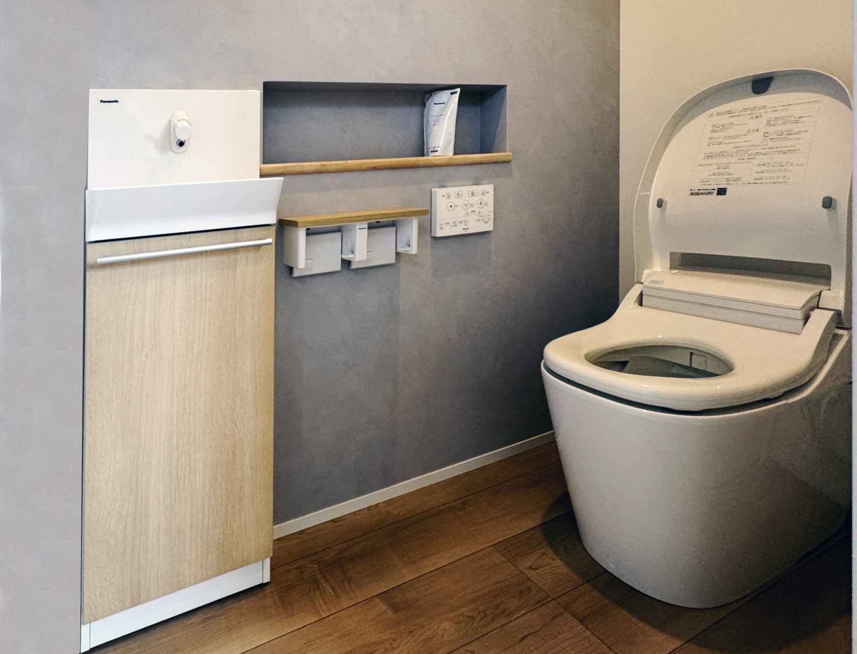 限られた広さにニッチ・カウンターと各機能をバランスよく配置し清潔感を確保。