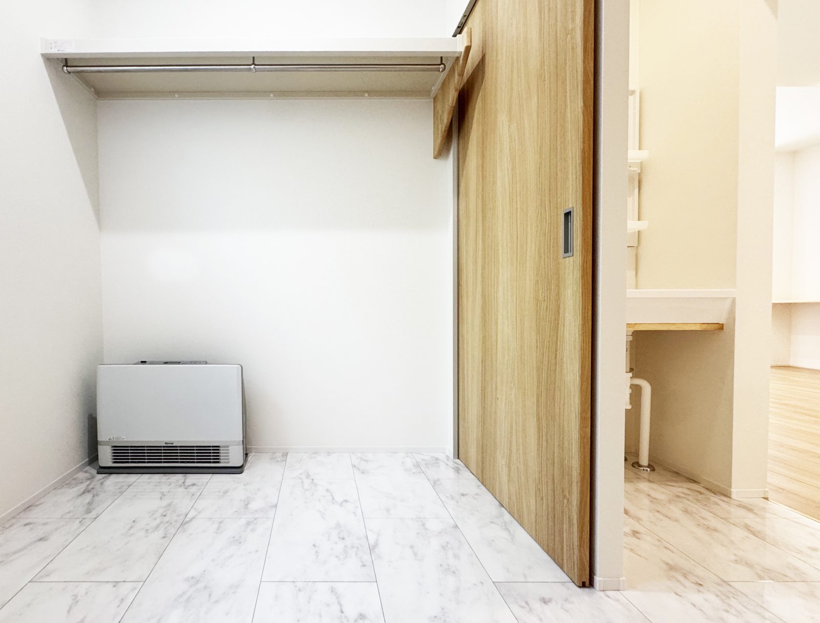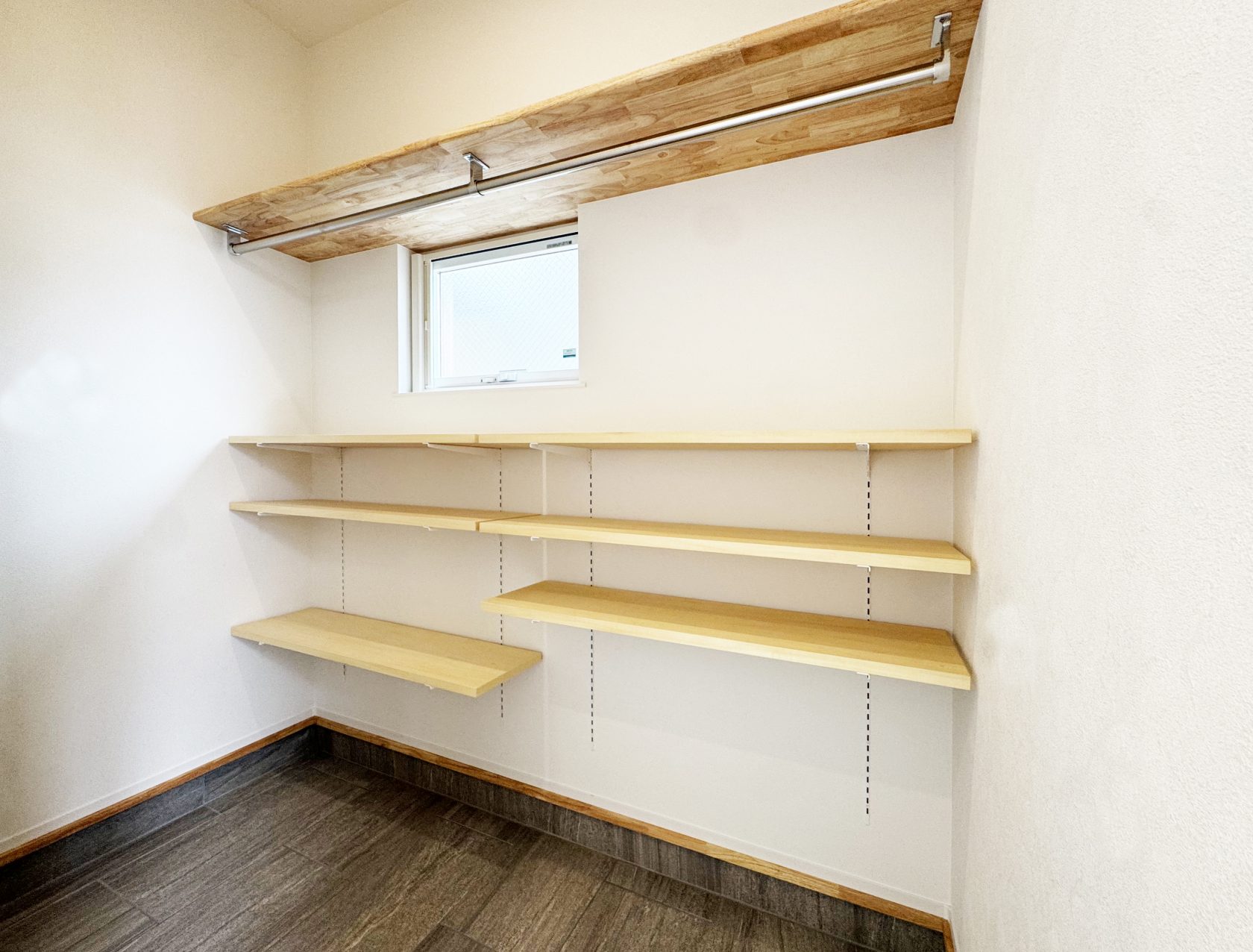 使い勝手にこだわったシンプルな棚とやわらかな光。見せるでも隠すでもない“整える”ための美しい空間。